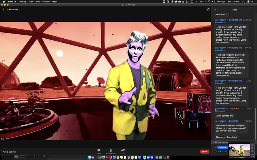 Close-up of de.Z with AR filter. June 2021 online/virtual workshop performance,
