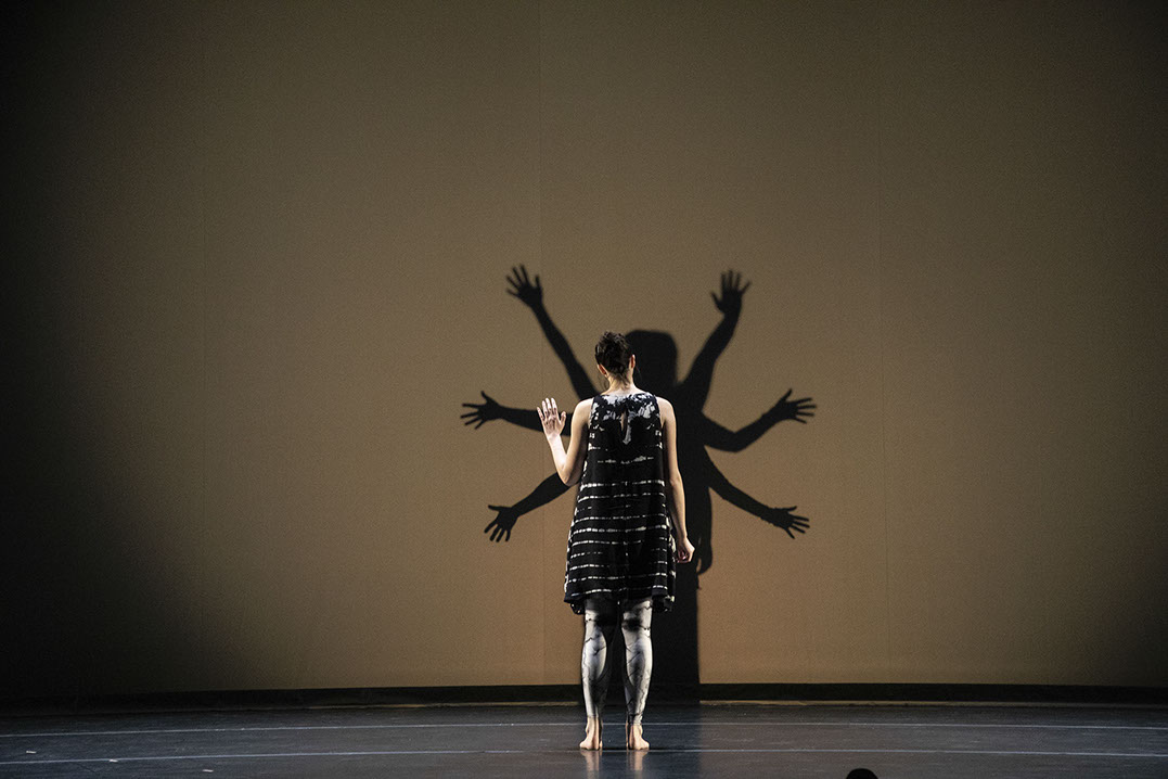 Some dancers discover behind the screen and a mediated, low-tech, shadow version of themselves.