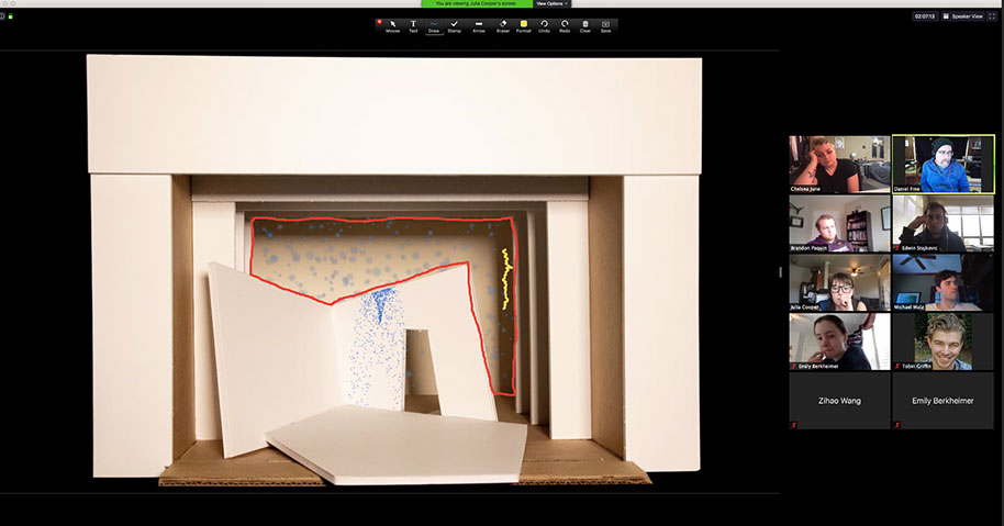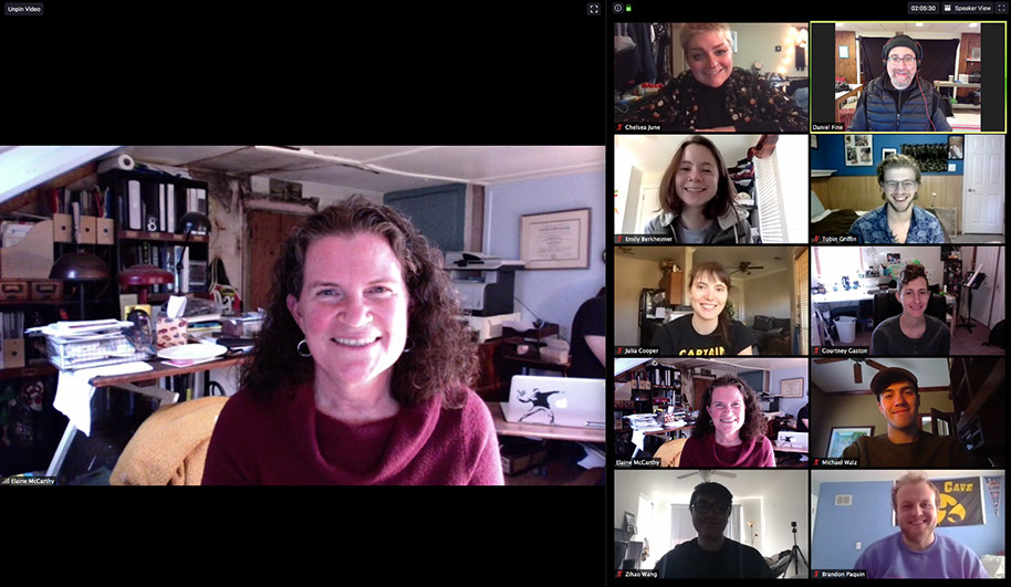 Broadway projection designer, Elaine J. McCarthy visits class via Zoom in April 2020.