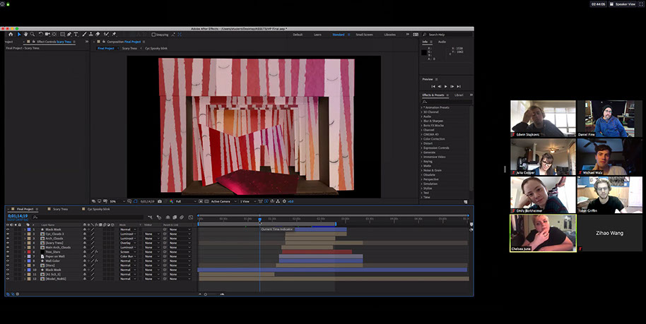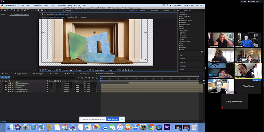 Screenshare of a student's After Effects project via Zoom. Spring 2020.
