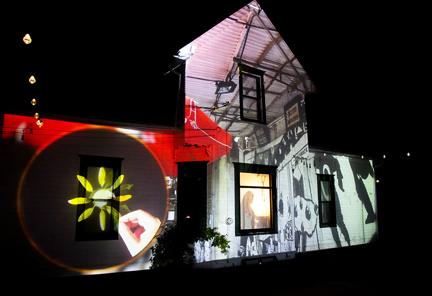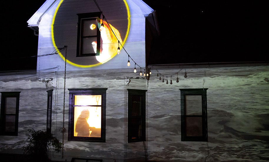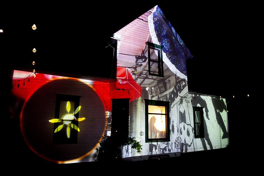 The house shatters to begin the show. This is an old trick for architectural projection mapping, but something Iowa City audiences haven't seen.