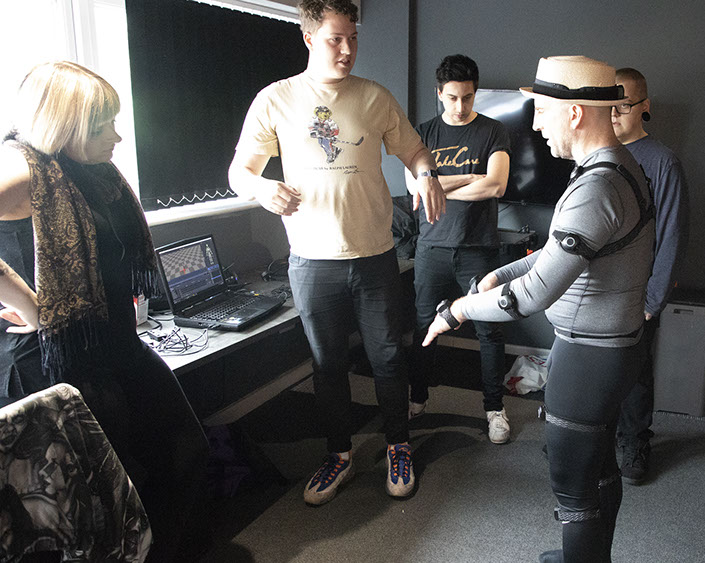 Setting up the motion capture suit at Backstage Academy. Photo by Daniel Fine