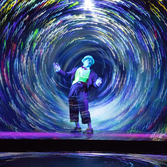 One artistic strength of the clown lies in their ability to response to an audience in real time. The performer must read the audience and shift on a dime to tailor the performance on any particular night in order to create a communal experience. For this reason, live clown shows have avoided immersing their performances in technology because it was not facile enough to respond to audience reactions and make each performance unique. Media Clown tackles this problem by working with motion capture and real-time systems in order to eliminate this obstacle and expand the traditional performance space beyond the stage to include audience space, shared virtual spaces, audience control of digital avatars and other special digital media effects. According to contemporary performance scholar Adrian Heathfield, performance has shifted aesthetically from “the optic to the haptic, from the distant to the immersive, from the static relation to the interactive.” Media Clown explores the underlying ideologies at the heart of this paradigm shift by using motion capture, Augmented Reality, Virtual Reality, and new integrated real-time digital media systems to create interactive, hybrid digital/physical spaces, which allows audiences to become directly engaged and physically involved in the story, thus connecting them with the clown and each other through technology.