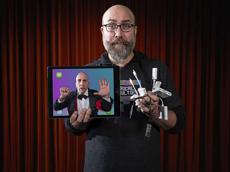 Stuck inside an iPad. PQ19 Performance. Photo by Dana Keeton