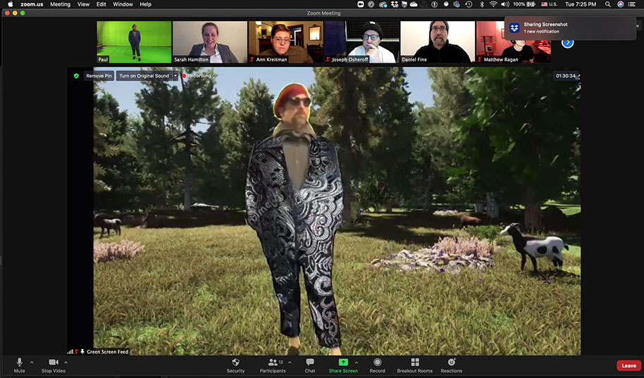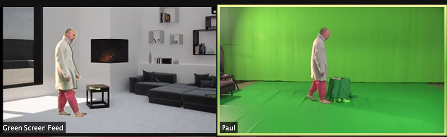 June 2020 online/virtual workshop. Precording of Paul playing character of Percy (top) and Paul (live) playing character of de.Z (bottom).