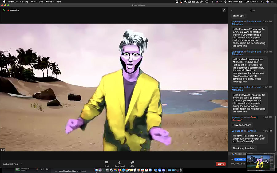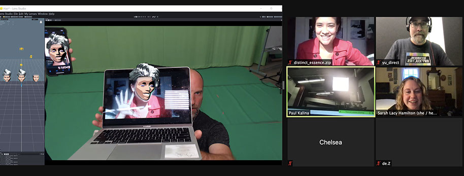 Close-up of de.Z with AR filter. June 2021 online/virtual workshop performance,