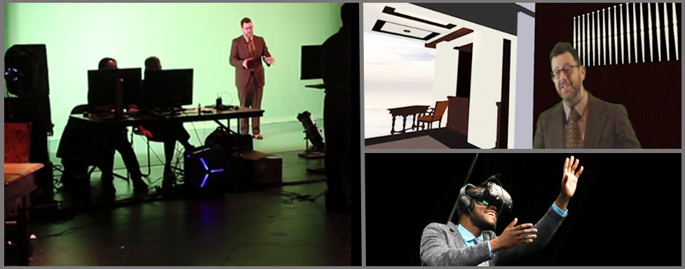 A multi-year research project of faculty and students at the University of Iowa departments of Theatre Arts, Dance, Computer Science, Art & Art History, and Engineering that explores the emerging collision of live performance, 3D design, computer science, expanded cinema, immersive environments, and virtual worlds by creating live performances in shared virtual and physical worlds. This research develops new ways to create immersive theatrical experiences in which multiple, co-physically present and remotely-located audience members engage with live actors through 3D video streams in virtual and hybrid physical/digital environments. To achieve this, the team devises original creative experiences, develops robust, real-time depth compression algorithms and advanced methods to integrate live 3D video and audio streams into spatially distributed, consumer VR systems.